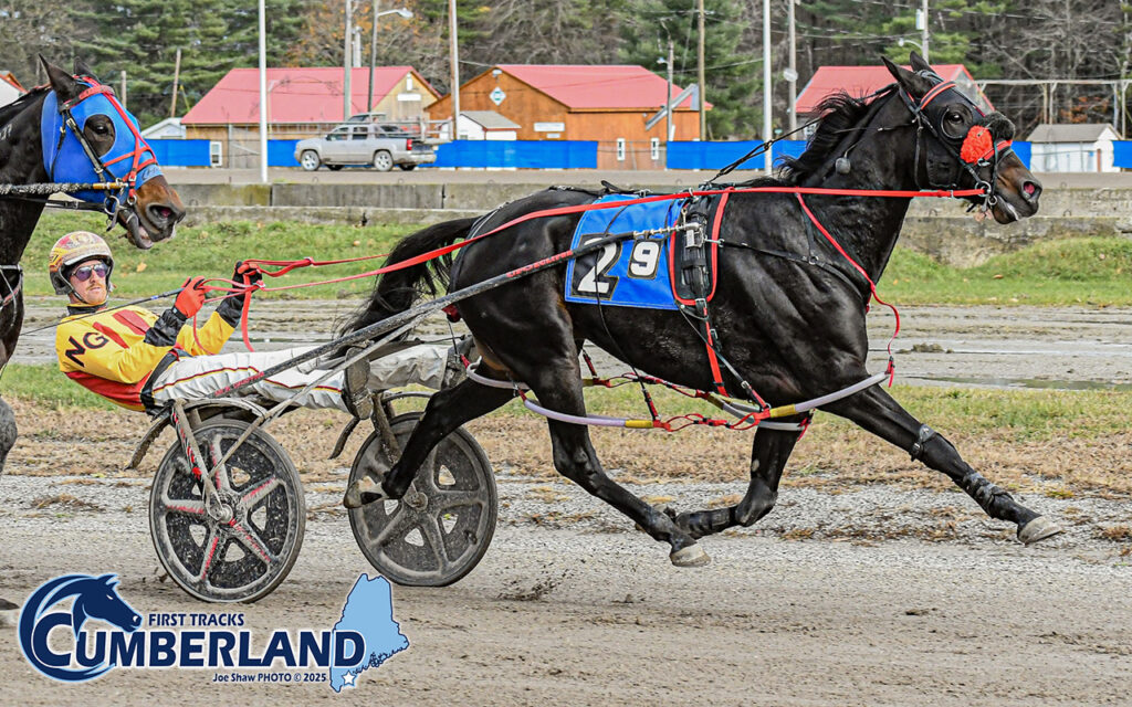 CUMBERLAND, ME – Local pacer Arts Flight captured his second $5,000 feature in as many weeks on Sunday (Nov. 16) at Cumberland Raceway, this time with Nick Graffam in the sulky.