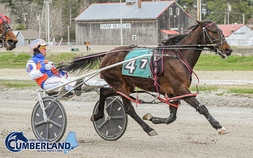 CUMBERLAND, ME – It didn’t take former Maine Sire Stakes champion Gowestyounggrace long to get her groove back, scoring handily in her seasonal bow on Friday (April 24) at Cumberland Raceway.